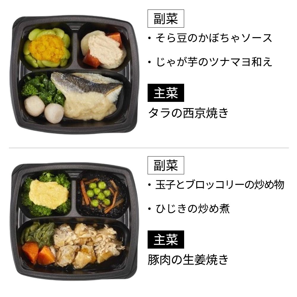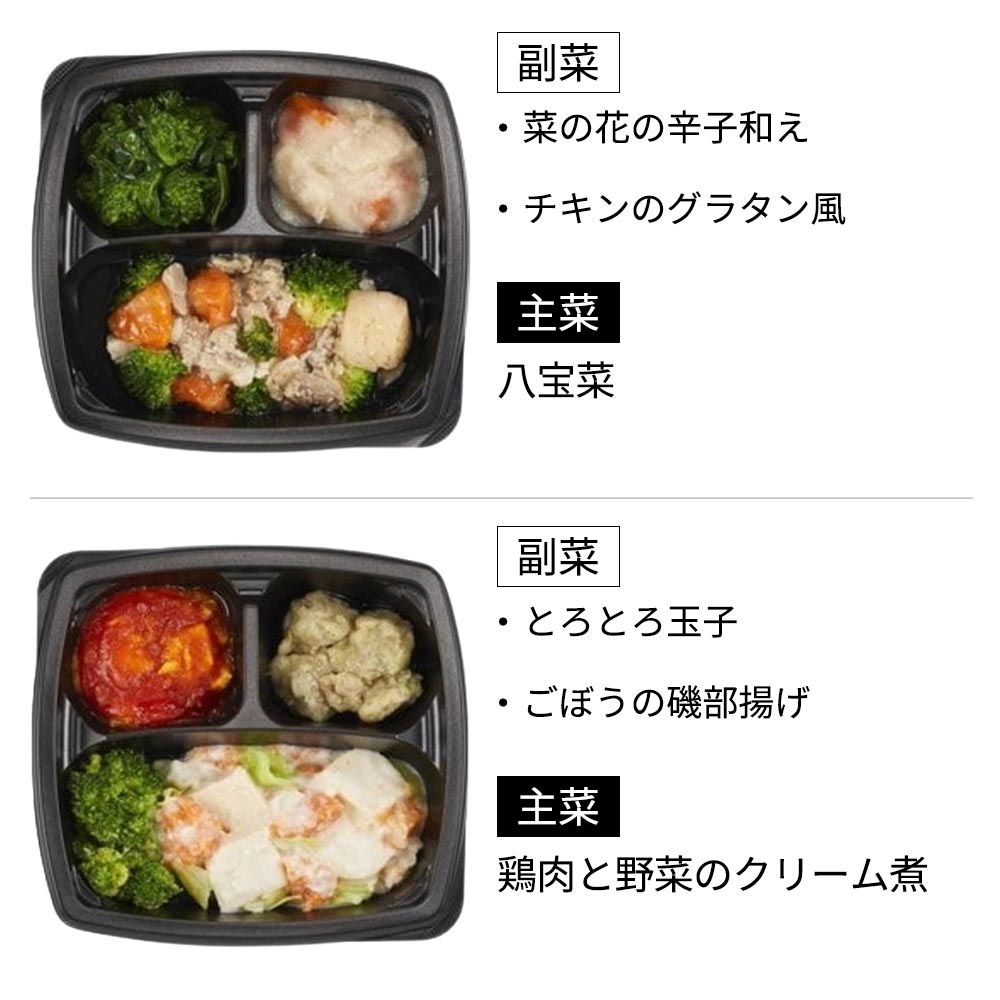 (すき焼き163g・鮭のチャンチャン焼き風170g・八宝菜162g・タラの西京焼き168g・カツ煮158g・カレイの煮付け159g・肉じゃが179g・鶏肉と野菜のクリーム煮165g・豚肉の生姜焼き157g・メヌケの照り煮171g)アレルゲン すき焼き(小麦、卵、大豆、牛肉、鶏肉、やまいも)