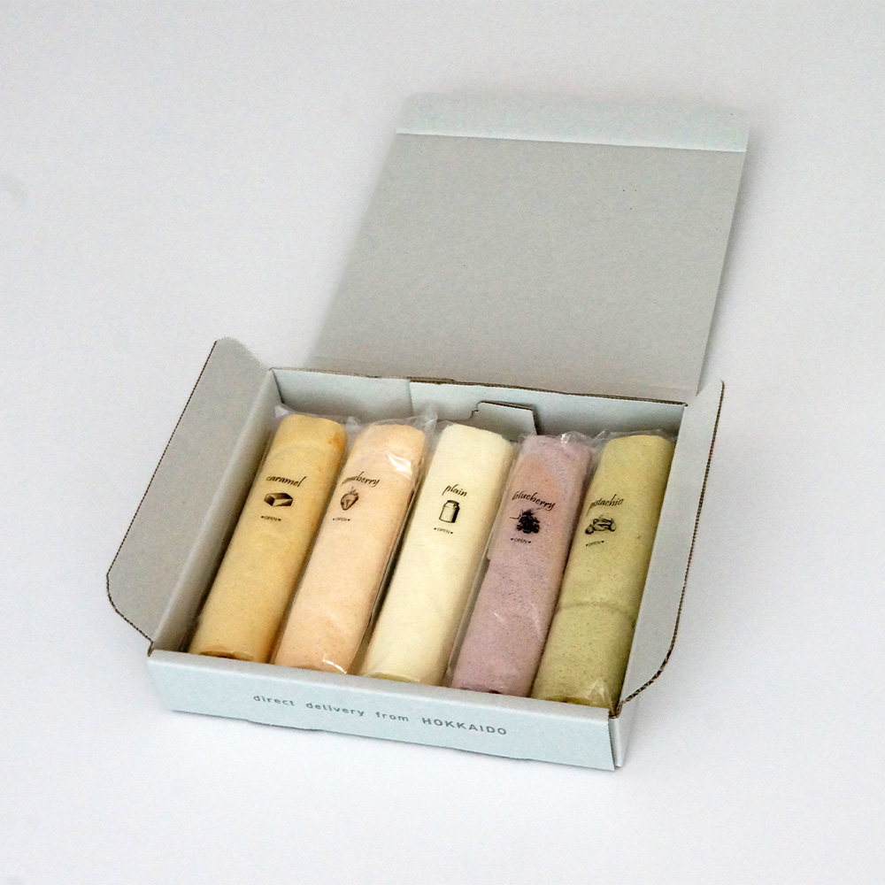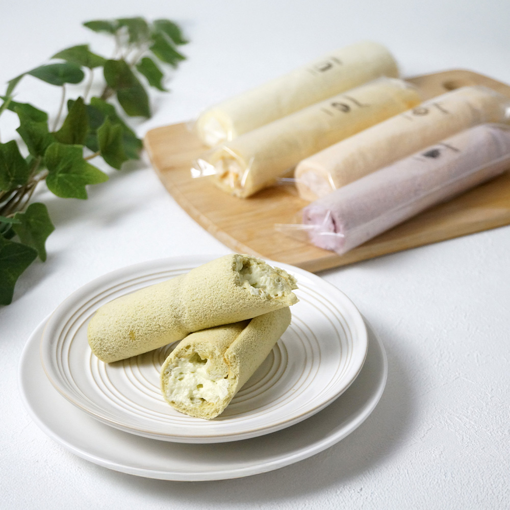 - ミルク風味をしっかりと感じる5種類のクリームをふわふわ食感のスポンジで巻き上げ、スティック状のロールケーキに仕上げました。ワンハンドで食べられるので、ティータイムはもちろん差し入れや外出先でのひとときにおすすめです。