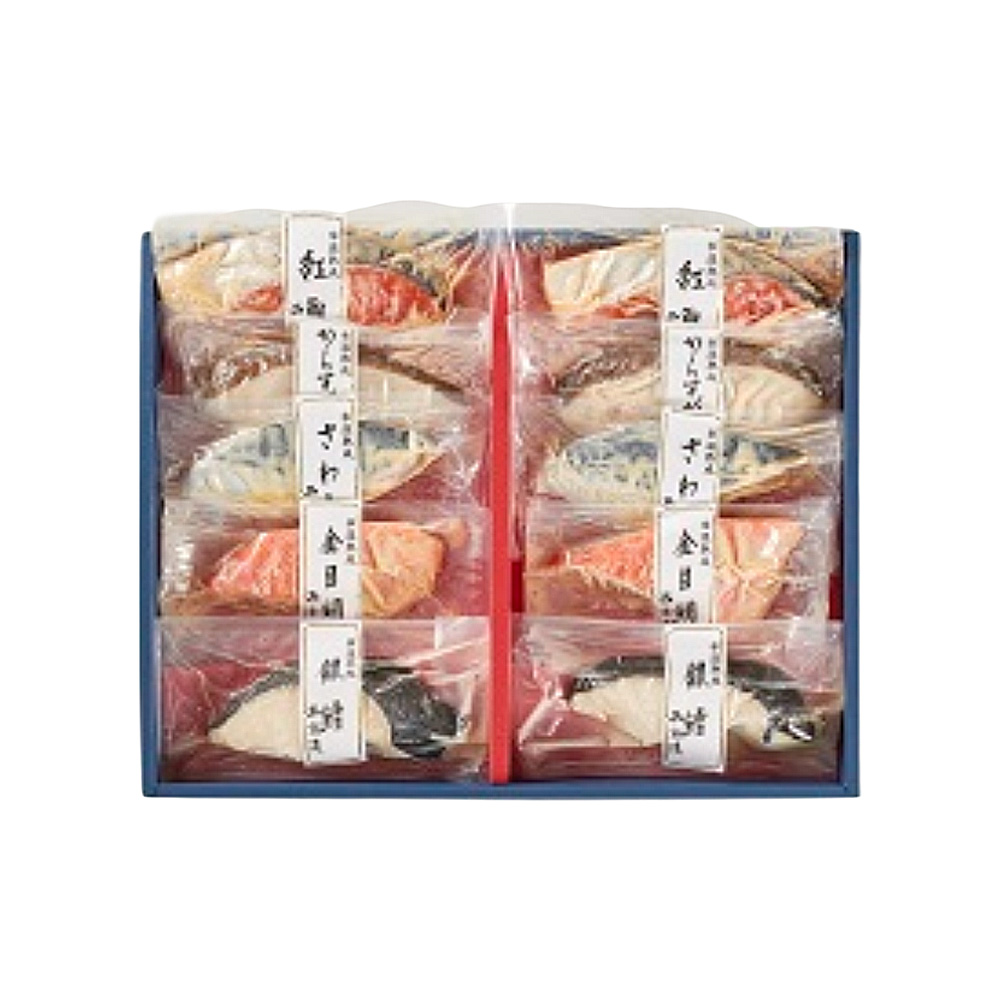 柔らかな身から溢れ出す魚の旨みと、身の隅々まで染み渡った上品な味噌の味の重なりを是非ご賞味下さい。内容量 銀だら西京漬け・さわら西京漬け・紅鮭西京漬け・からすがれい西京漬け・金目鯛西京漬け 各70g×2 アレルゲン28品目 大豆・サケ 賞味期限 出荷日より冷凍60日 保存方法 要冷凍(-18℃以下) ギフト対応 ギフト包装:簡易包装