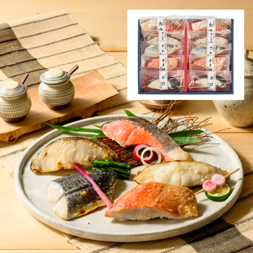- 銀だら、紅鮭、さわらなど5種類の魚を自社ブレンドした特製の味噌床で漬け込み山陰発祥「氷温熟成」技術で、素材の旨みを引き出したこだわりの味。