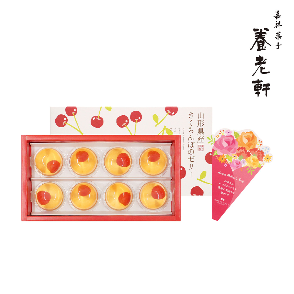 - 山形県産さくらんぼを使った、涼やかで可愛らしい水菓子です。京都で人気の和菓子店「京都養老軒」が監修。母の日のメッセージをつけてお届けいたします。