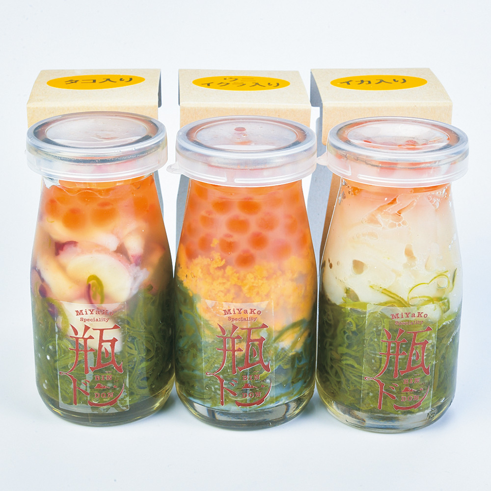 - 宮古市の新たなご当地グルメのお土産用瓶ドンです。