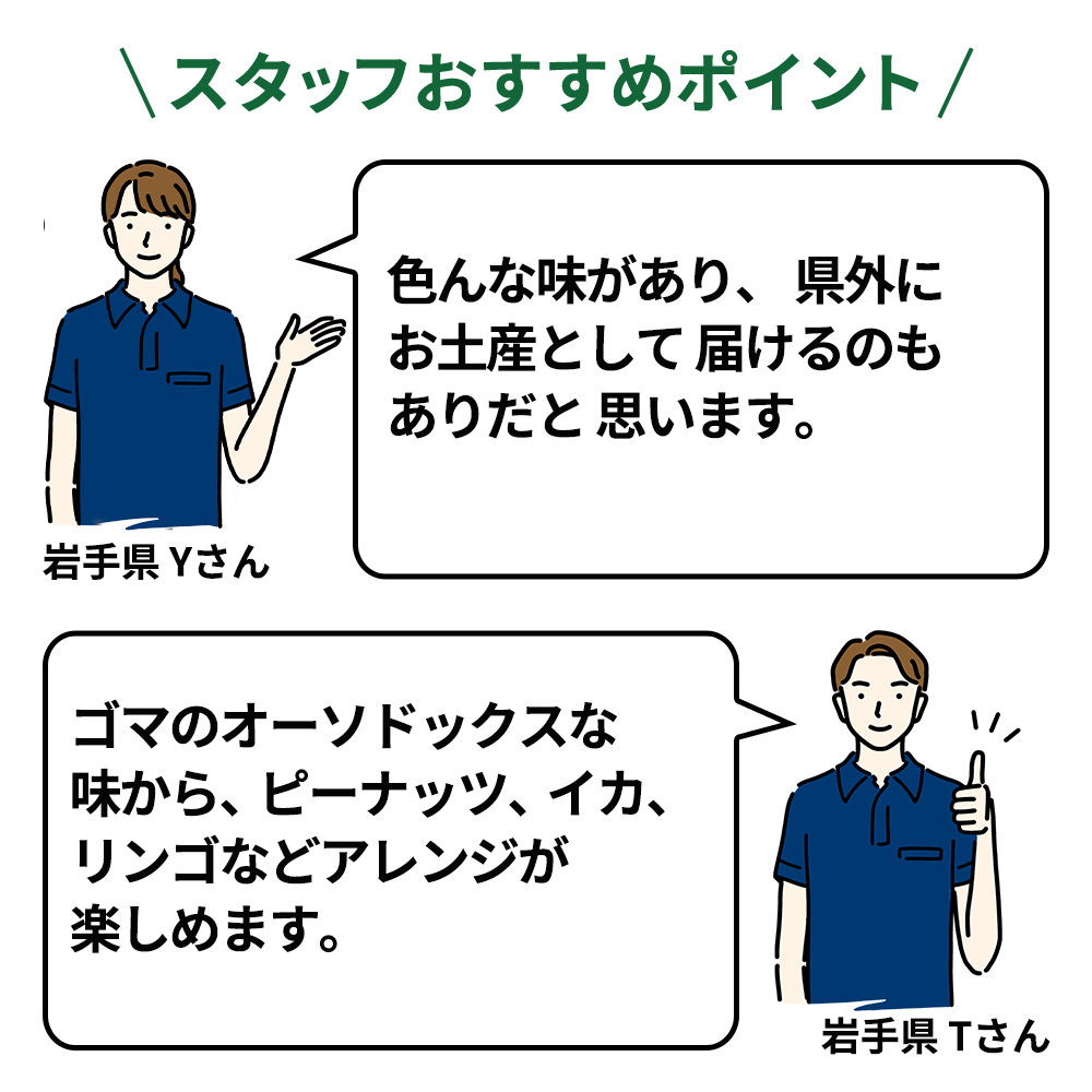 『腕自慢』は、胡麻、落花生、まめ醤油、まめごろう、いか、りんごの6種を詰合せています。内容 【胡麻】6枚、【落花生】6枚、【まめ醤油】5枚、【まめごろう】5枚、【いか】4枚、【りんご】4枚 原材料名 【胡麻】小麦粉(国内製造)、胡麻、でん粉、食塩/重曹、(一部に小麦・ごまを含む)
