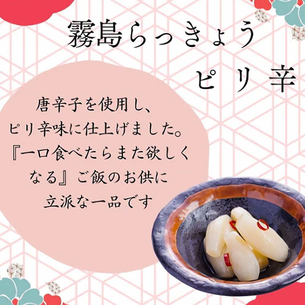 - ご飯のお供やお酒のおつまみ等にピッタリな、唐辛子を使用してピリ辛に仕上げたらっきょうです。