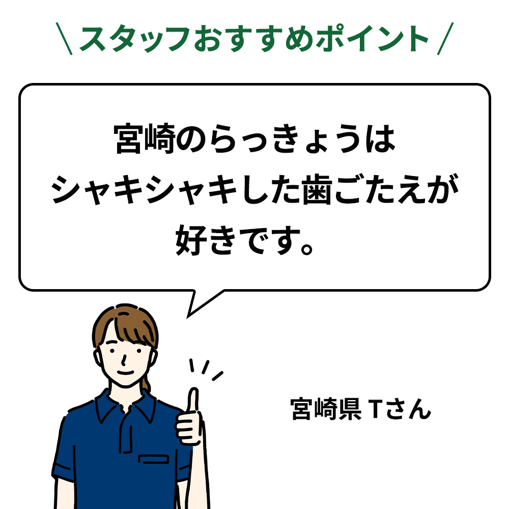 | 原材料名 | らっきょう(宮崎県産)、漬け原材料(砂糖、醸造酢、食塩、唐辛子) |