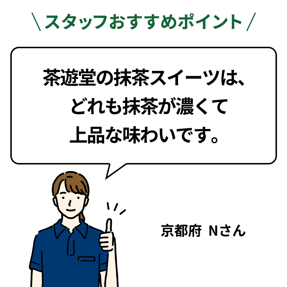 - 茶游堂自慢の石臼挽き宇治抹茶をバランス良く加え、わらび餅のやさしい風味に宇治抹茶の香りをプラス。