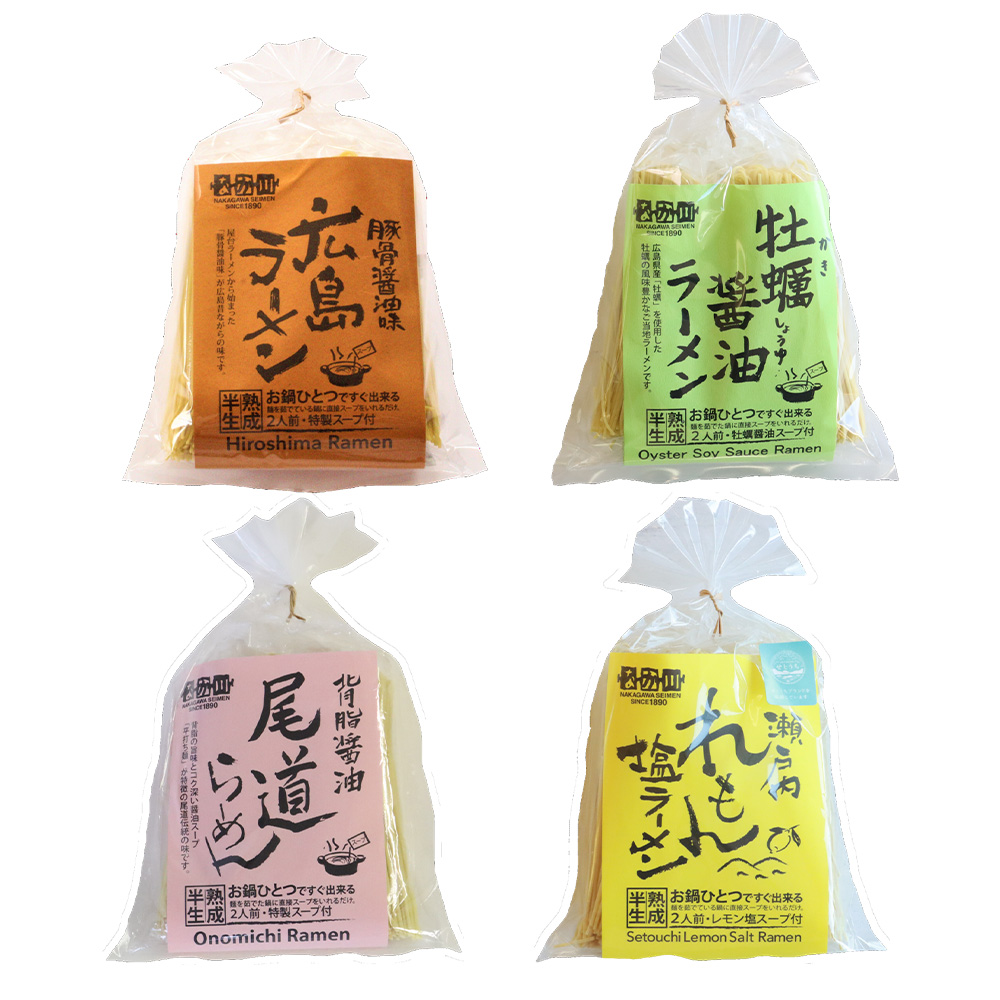 - 広島定番の尾道ラーメンや広島ラーメンに加え、牡蠣醤油ラーメン、れもん塩ラーメンといった広島を連想させるご当地ラーメン4種をセットにしました。