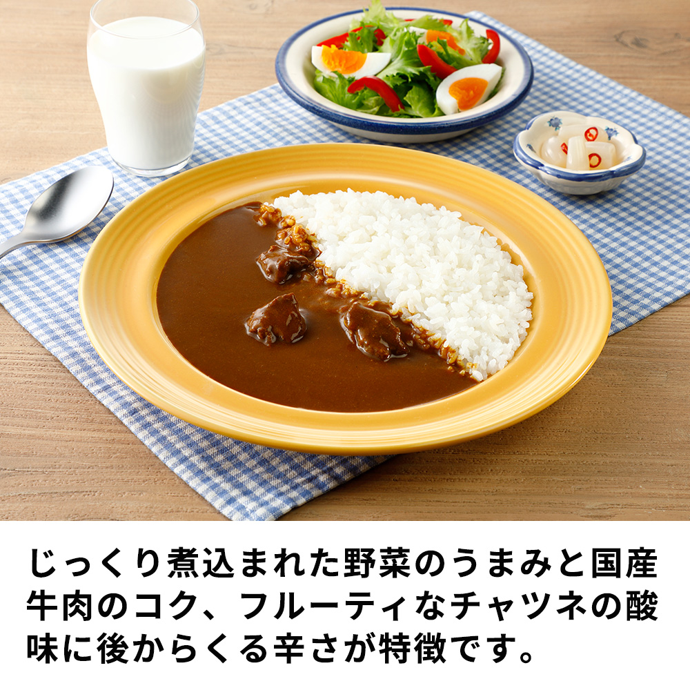 じっくり煮込まれた野菜のうまみと牛肉のコク、フルーティなチャツネの酸味に後からくる辛さが特徴です。
