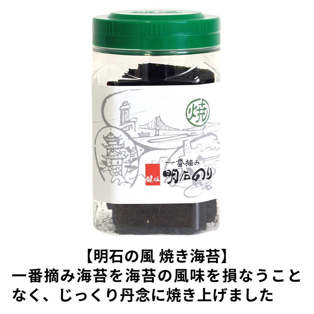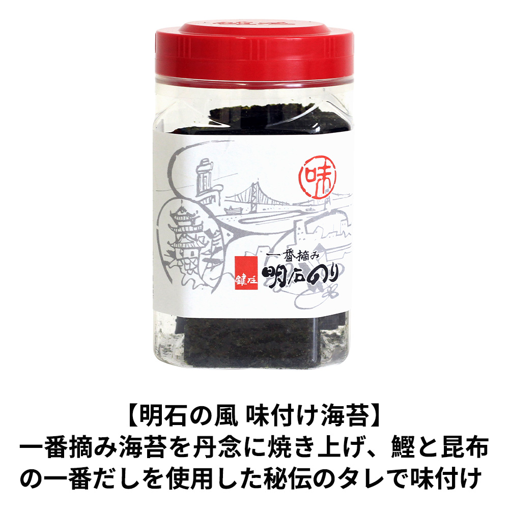- 兵庫県産一番摘み海苔のみを厳選して使用している「明石の風」
