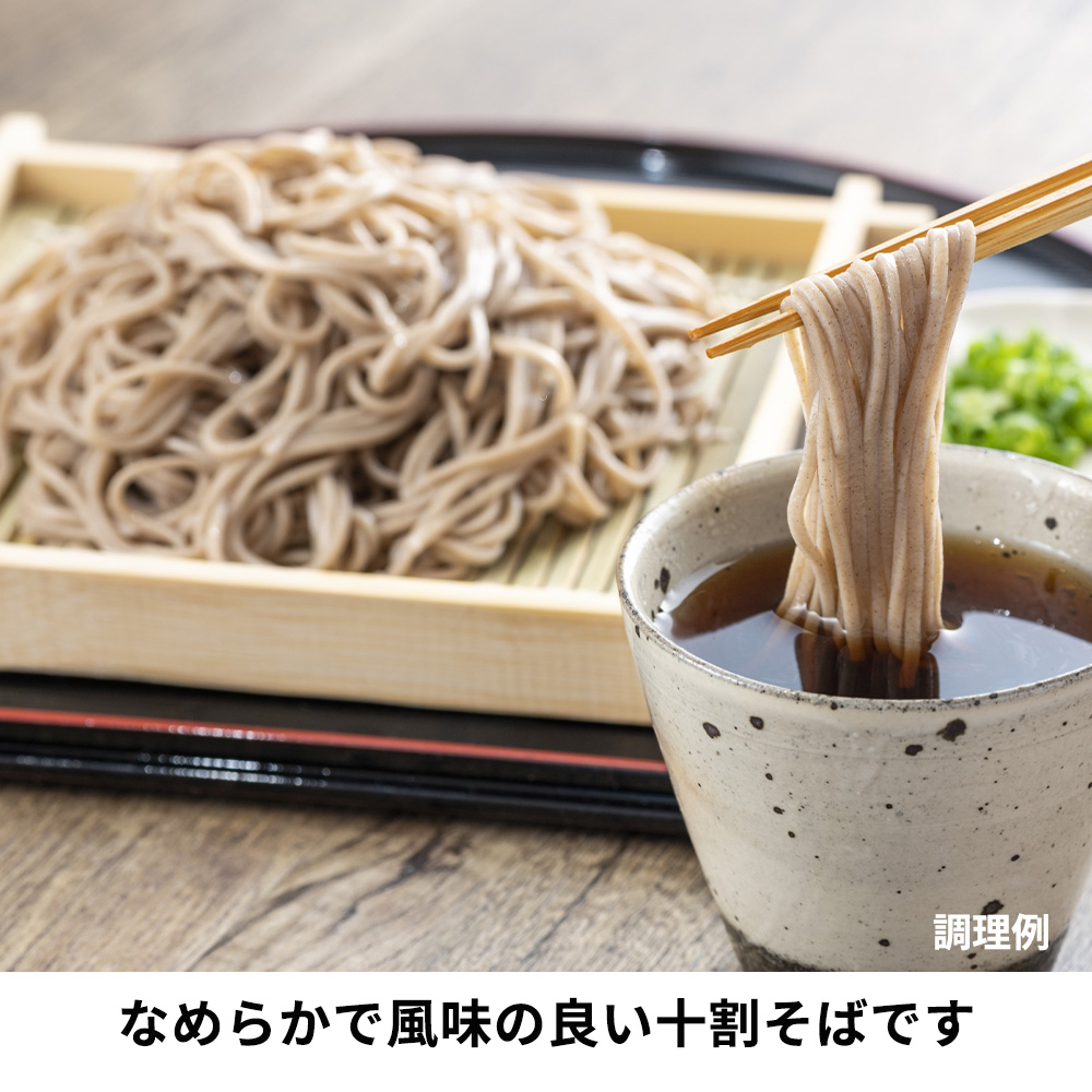 - つなぎを使わず独自製法で仕上げたそば粉を100%使用したなめらかで風味の良い十割そばです。