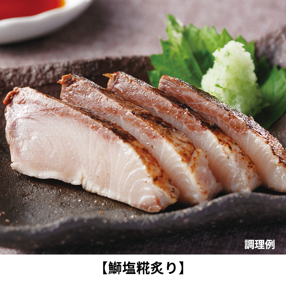 - 鰤 塩糀炙り、ふぐ塩糀炙り、サーモン塩糀炙りのセットです。
